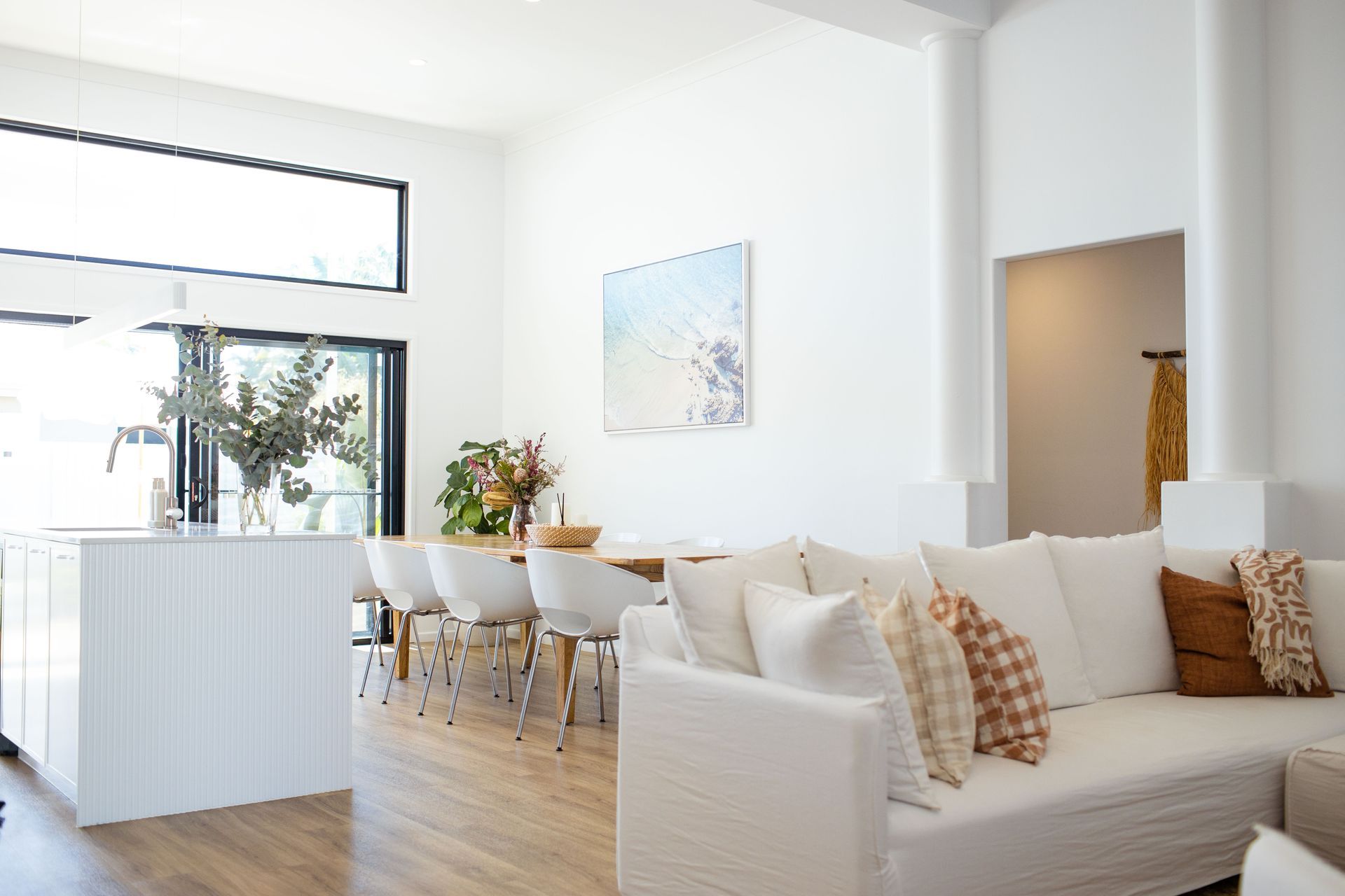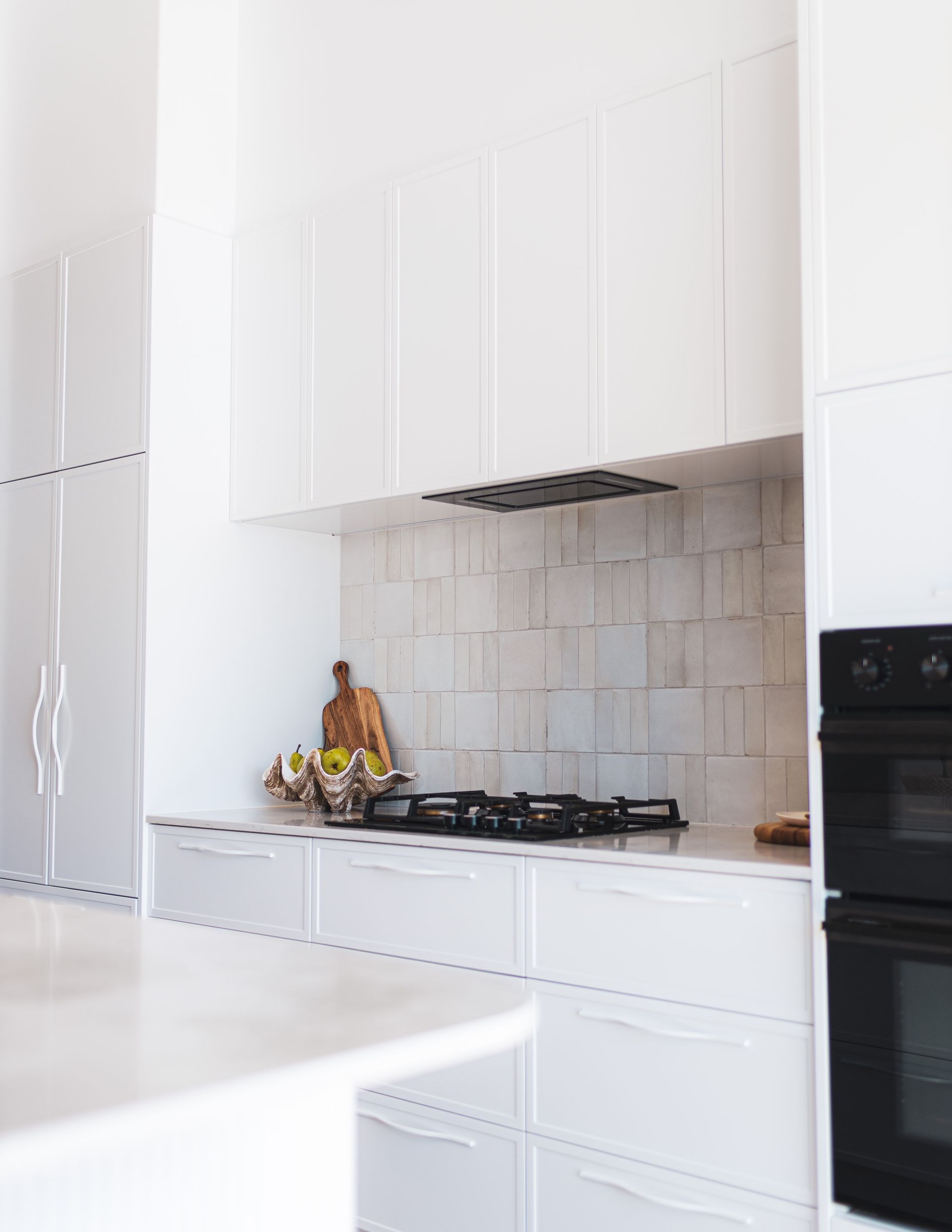 Situated in Queensland on the Sunshine Coast close to the beach, this project was conducted remotely. The brief, to add value to this tired 90’s property. Achieved by designing a new kitchen, with ample storage and incorporating an integrated fridge to enhance the size and look of the space. This, in conjunction with using beautiful materials such as engineered stone benches, statement lighting, handles and ribbed and framed kitchen joinery.